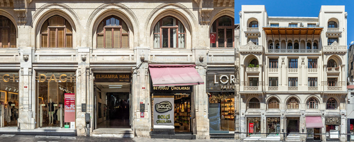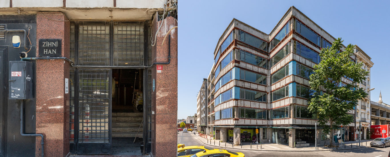 Zihni Han, a recently refurbished 1973 building once home to a shipping agency in Tophane, now surrounded by the rapid transformation of Galataport;