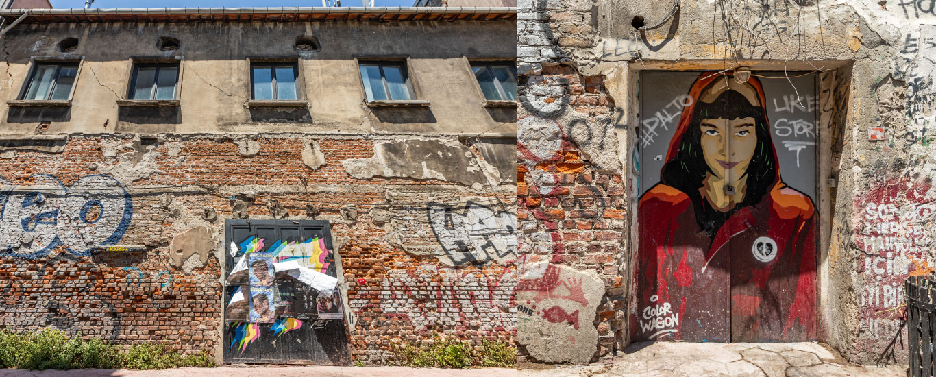 Muradiye Han and Galeri 77, across from each other on Galata Wine Dock Street—once a central artery for wine trade with the Aegean;