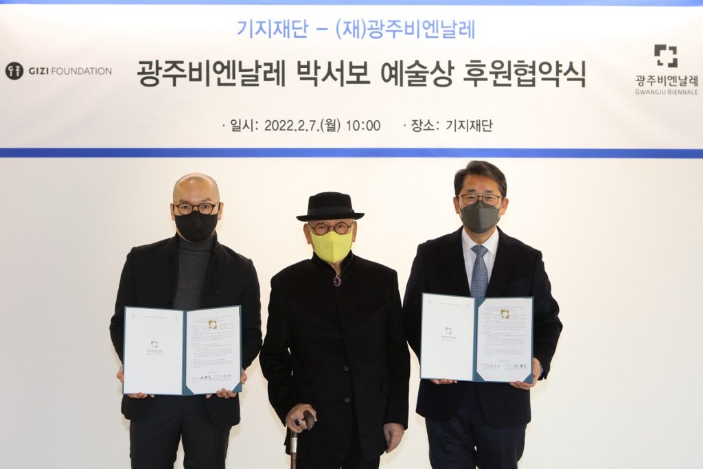 The two foundations held a ceremony on February 7 at the premises of the GIZI Foundation located in Yeonhee-dong, Seodaemun-gu, Seoul, to sign a sponsorship agreement for the newly launched award. Present at this event were artist Park Seo-Bo, President Park Yang-woo of the Gwangju Biennale Foundation, and Chairman Park Seong-ho of the GIZI Foundation.